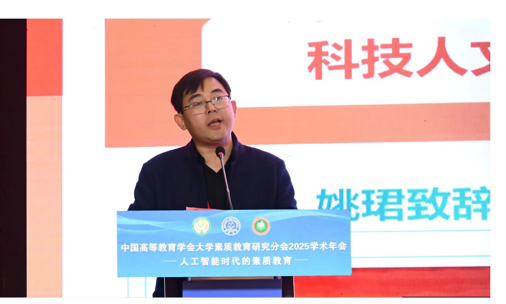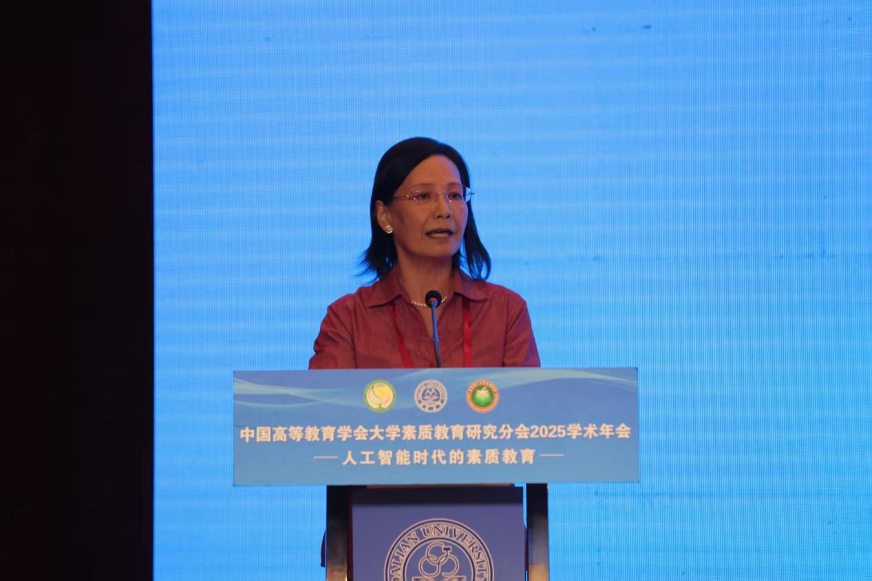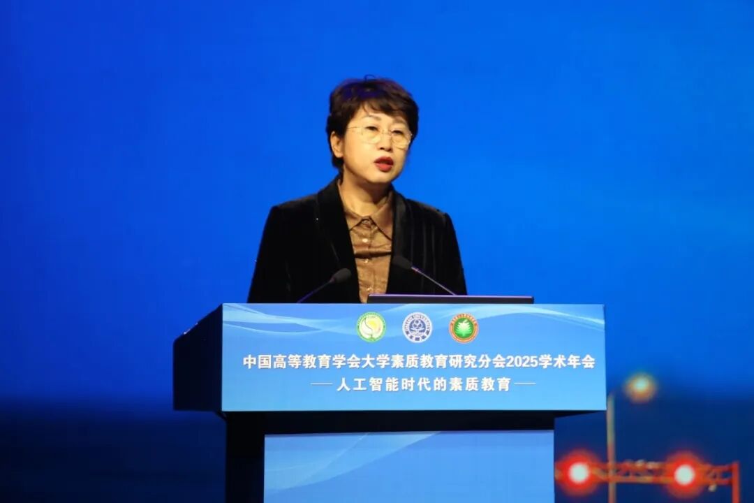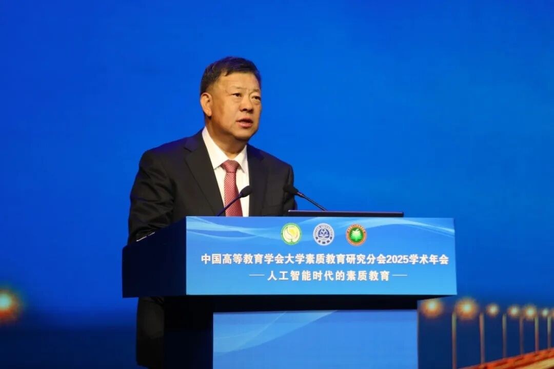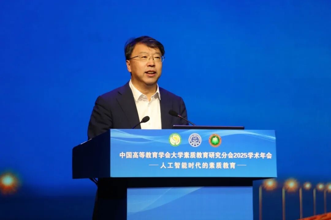 姜治莹在致辞中表示,习近平总书记在全国教育大会上的讲话为建设教育强国指明了前进的方向、提供了根本遵循。2025年8月,国务院印发了《关于深入实施“人工智能+”行动的意见》,本次年会正值实施文化素质教育30周年,以“人工智能时代的素质教育”为主题,恰逢其时、意义深远,是学习贯彻落实全国教育大会精神、助推教育强国建设的一项重要举措。他充分肯定了大学素质教育研究分会的工作,多年以来一直推动并引领着大学素质教育的理论研究与实践探索,希望大家通过会议研讨以更加开放的胸襟、更加系统的思维、更加务实的行动,持续推动人工智能时代素质教育创新发展,为构建高质量教育体系,实现教育现代化和民族复兴做出新的更大的贡献。