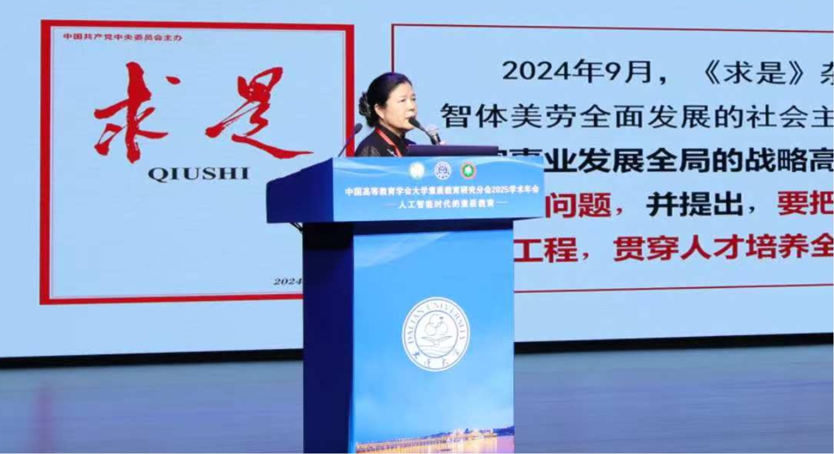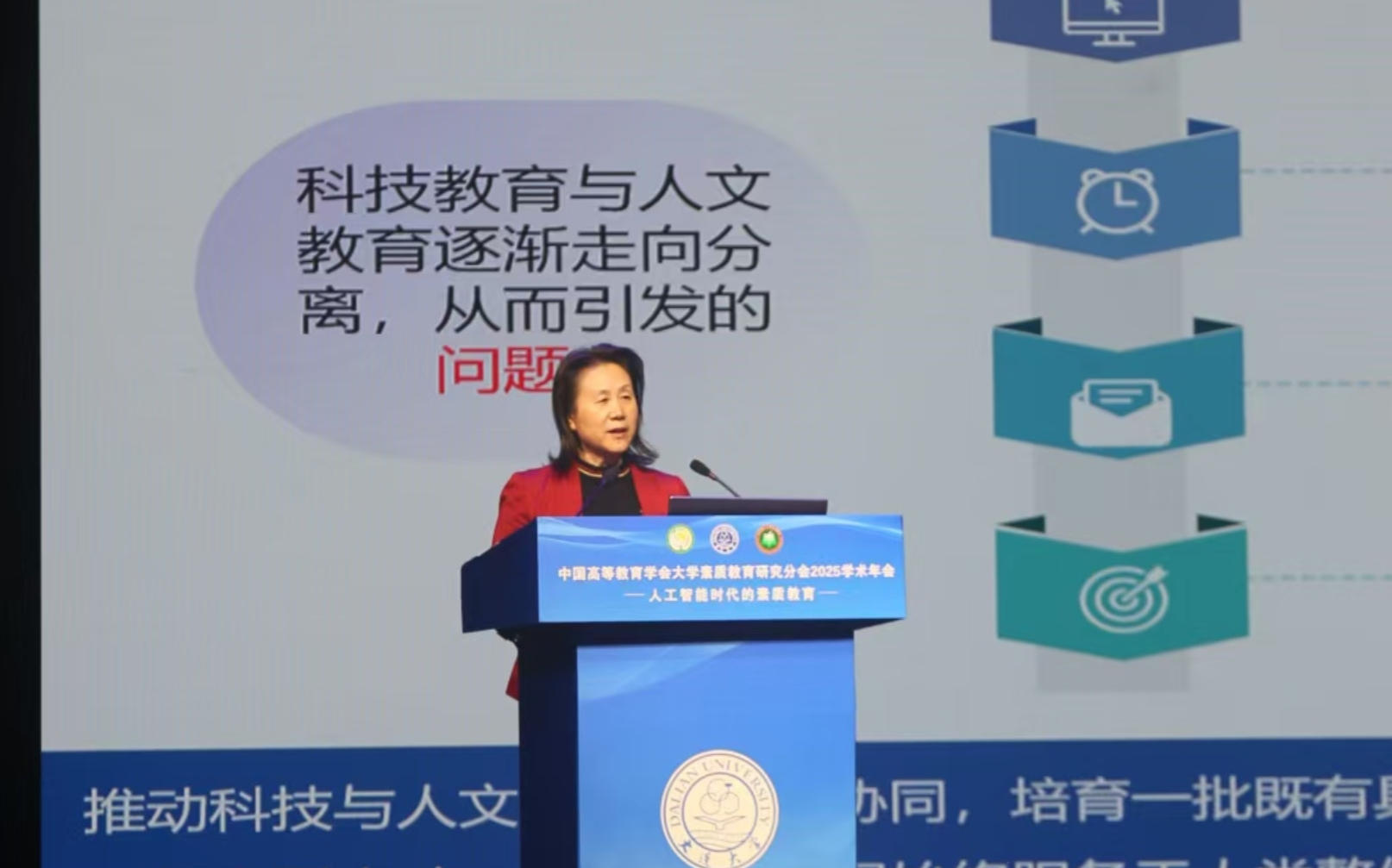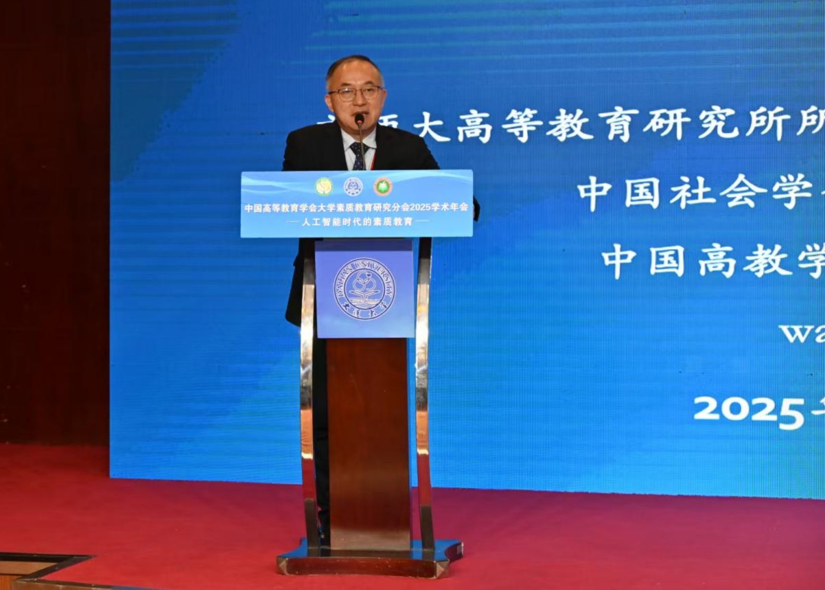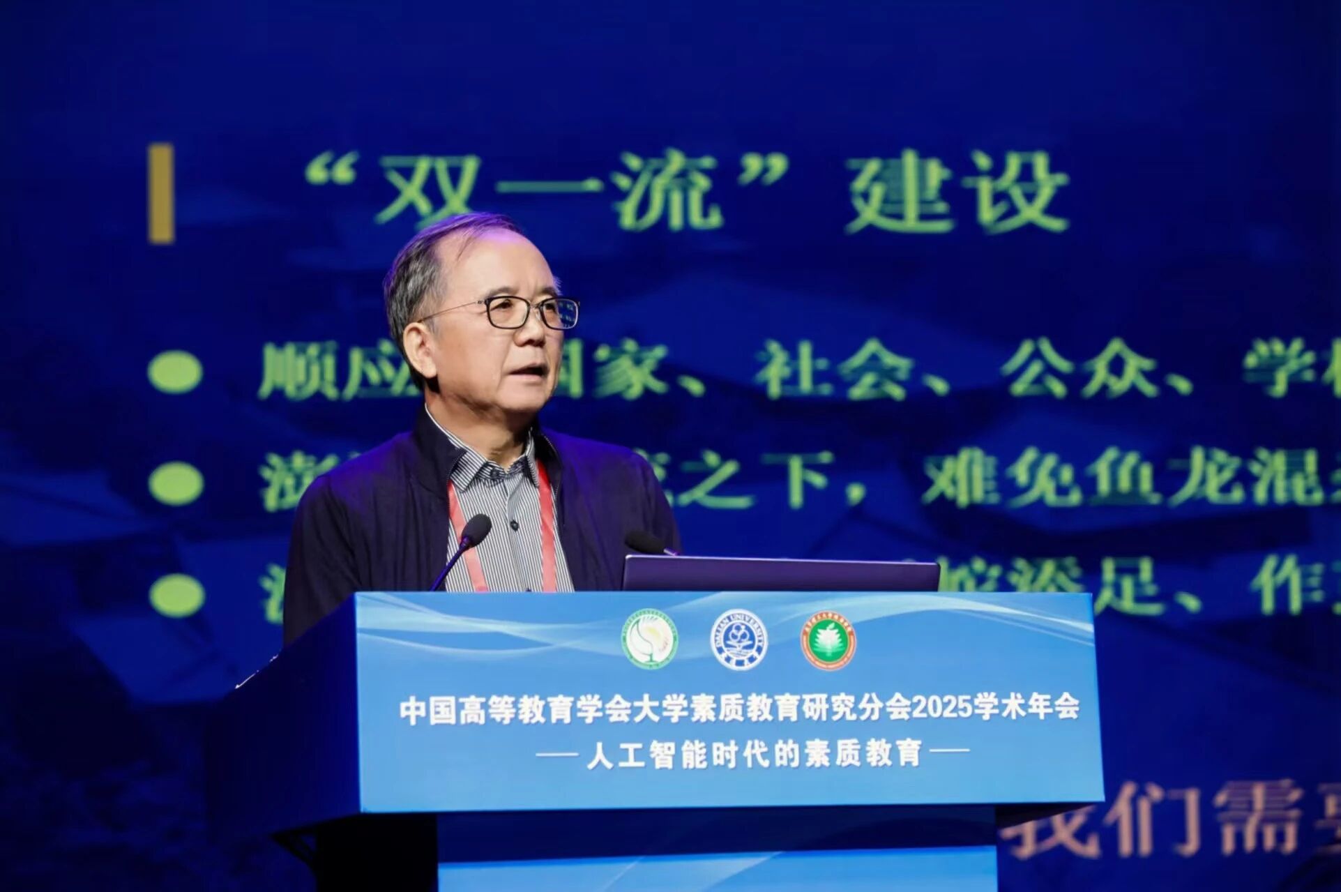 姜治莹在致辞中表示,习近平总书记在全国教育大会上的讲话为建设教育强国指明了前进的方向、提供了根本遵循。2025年8月,国务院印发了《关于深入实施“人工智能+”行动的意见》,本次年会正值实施文化素质教育30周年,以“人工智能时代的素质教育”为主题,恰逢其时、意义深远,是学习贯彻落实全国教育大会精神、助推教育强国建设的一项重要举措。他充分肯定了大学素质教育研究分会的工作,多年以来一直推动并引领着大学素质教育的理论研究与实践探索,希望大家通过会议研讨以更加开放的胸襟、更加系统的思维、更加务实的行动,持续推动人工智能时代素质教育创新发展,为构建高质量教育体系,实现教育现代化和民族复兴做出新的更大的贡献。